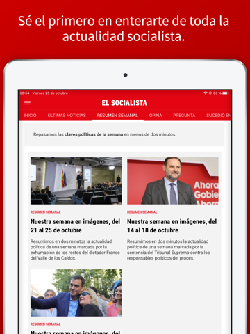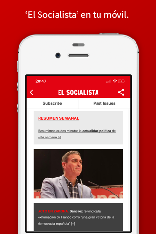 Gracias a la app podrás conocer las últimas noticias políticas, recibir alertas en tu móvil, ver vídeos en directo, acceder a contenidos exclusivos y participar en ‘El Socialista’ enviando tus preguntas a dirigentes del PSOE o tus artículos de opinión.