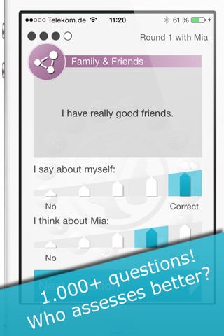 Spontaneous, funny and interactive: Answer exciting questions, play with your friends or strangers for free and assess them correctly. Finally, there’s a new kind of quiz app allowing you to prove your knowledge of human nature. How well do you know the other players? And what do they think about you?