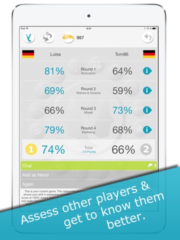 * You and your opponent play 4 rounds with 4 questions each round – How much do you resemble each other?
