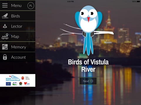 Aplikacja została stworzona w ramach projektu "Ochrona siedlisk kluczowych gatunków ptaków Doliny Środkowej Wisły w warunkach intensywnej presji aglomeracji warszawskiej". Projekt ten realizowany jest przez miasto stołeczne Warszawę oraz Stowarzyszenie Stołeczne Towarzystwo Ochrony Ptaków STOP, dzięki przyznanemu przez Komisję Europejską dofinansowaniu ze środków Instrumentu Finansowego na Rzecz Środowiska (LIFE+) oraz dzięki dotacji Narodowego Funduszu Ochrony Środowiska i Gospodarki Wodnej.