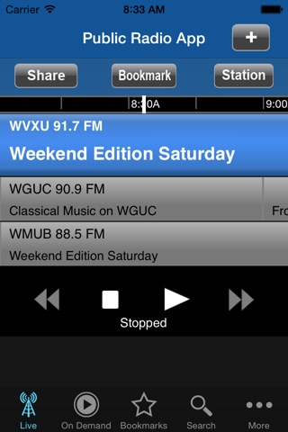 I have used all public radio apps and this one is by far the best live interface and it is easy to get on demand podcasts from PRI , NPR etc. However it recently just started to freeze and quit and it can not stay on a station, even though I have re-installed a numder of times- sadly have to give 1 star, When bugs are fixed I will give it 5 plus.