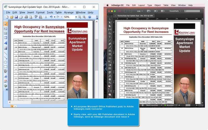 PUB to INDD is a must-have app for anyone who want to reads, edits, or converts Microsoft Office Publisher document to Adobe InDesign on Mac. It allows you to directly convert and open MS Publisher document in InDesign. Adobe InDesign is a most popular desktop publisher software in the world, so you can easily edit your MS Publisher document in InDesign, save as InDesign document format and reuse it.
