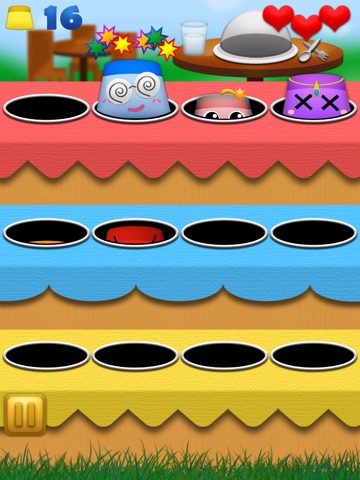 Hit Puddings before they hide into hole. Life will be reduced when you miss 1. Game over immediately when you hit bomb.