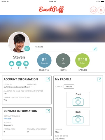 EventPuff will issue payment to you after you fulfil the job, and get rated by your hirer. Through Bank transfer by one week after you fulfil the job. We’re looking to make this a next day thing!