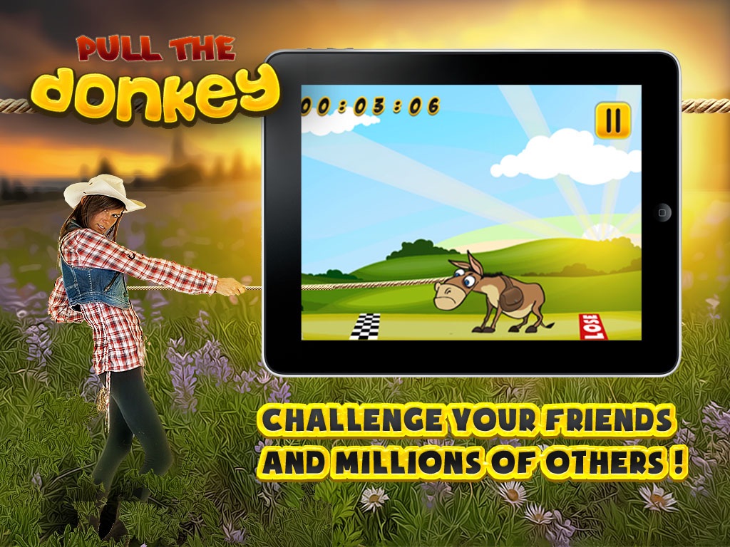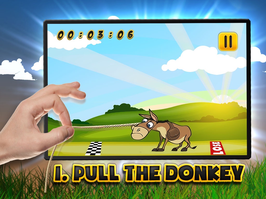 Your mission is pull the donkey as fast and as stronger as you can. You can pull it! You can do it! You can beat him!