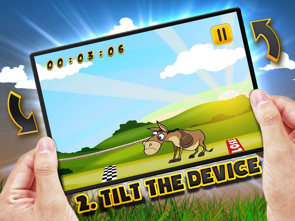 ★ Pull the rope, tilt your device and SHOUT on the donkey.. Then he will move over the finish line ★
