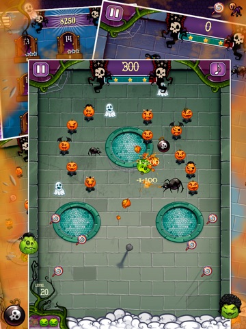 Launch your green pumpkins at the orange ones, remove them all and complete all levels of the Halloween castle. Bounce, measure your strength and adjust your aim to achieve your goal, but beware – the orange pumpkins have friends who will make things difficult for you. Find different ways to complete a level.