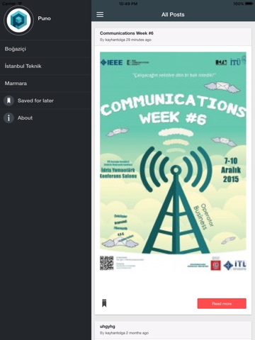 Puno; üniversite öğrencileri için afişlerin sergilenebileceği online platformdur. Öğrenci kulüpleri, sivil toplum kuruluşları ve şirketler, bu uygulamayı kullanabilir ve afişlerini fakülte panolarına alternatif olarak bu uygulama üzerinden yayınlayabilirler.