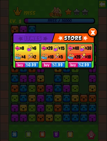 - Double click the connected same-color puppies, the more same-color puppies clicked, the higher score.