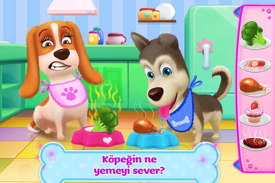 > Feed your puppy yummy snacks like steak, ice cream, & drumsticks!
