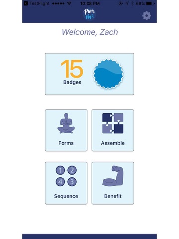 new learning by giving the student an opportunity to decipher a puzzle with the same pose name. Sequence allows the student to guess where a particular yoga pose would fit in a course of Pure Edge Curriculum movement sequences. Finally Benefit teaches the student through quizzes what are the basic elements that constitute the movement: breathing, anatomy, core cardiovascular effects.