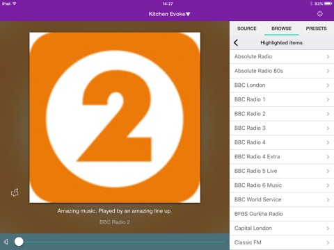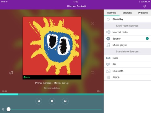Pure Select is the companion app for our Evoke F3 with Bluetooth, Evoke C-F6, Elan IR3 and Elan IR5 connected radios. You can use the Pure Select app to tune your radio into over 25,000 internet radio stations or your favourite digital or FM stations, access the Spotify* app and adjust the volume from the convenience of your iPod touch, iPhone or iPad.