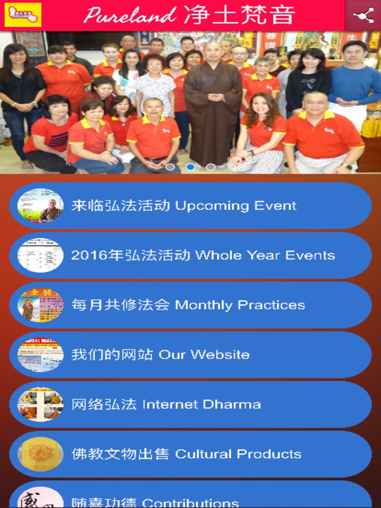 To promote awareness of Pureland activities and upcoming events. Also link to other Buddhist organisations. Youtube videos showing most Ven Dharma talks. Our opening hours and how to contact us. Aso link to our Facebook.