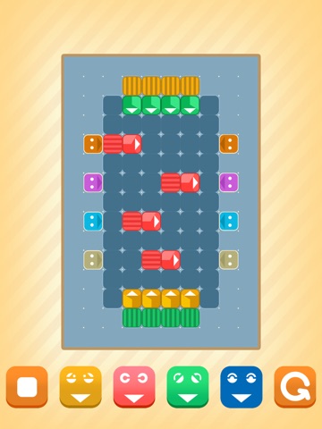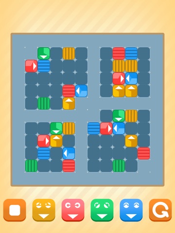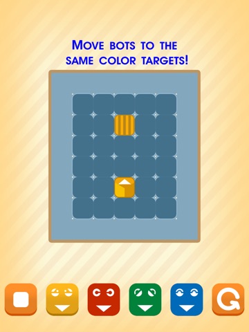 Touch the buttons to move bots to the same color targets, each bot can only move in one direction. Be aware the bots can push each other to change the moving direction. Some mystery tele-porters can do it too. Sound interesting?