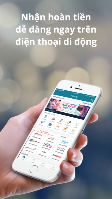 Với giao diện và tính năng hoàn toàn mới, Putatu.com mong muốn đem lại trải nghiệm mua sắm hoàn tiền tốt nhất cho khách hàng trên thiết bị di động. Trang chủ gợi ý các website mua sắm nổi bật cùng các chương trình khuyến mại mới nhất sẽ giúp khách hàng dễ dàng lựa chọn những deals hấp dẫn mà không bỏ lỡ bất cứ ưu đãi nào. Mức hoàn tiền và hướng dẫn được hiển thị rõ ràng giúp bạn biết trước giá trị hoàn tiền sẽ nhận được. Hãy sàng để trải nghiệm ứng dụng mua sắm hoàn tiền mới nhất Putatu.com.