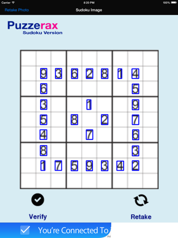 This app provides you the opportunity to have wide and vast amount of sudoku puzzles to play. Whether you own a sudoku book, or you just want to solve a puzzle off the internet, it makes life easy for you. Simply open your sudoku book, and take a picture or go on the internet, find any sudoku puzzle, and take a picture of it. You will be playing sudoku on the go.