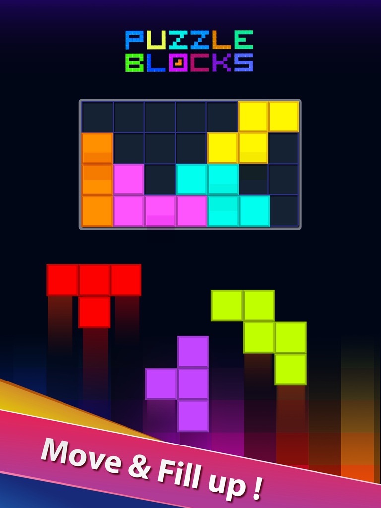 Game using dark interface with classic puzzle blocks. All levels are random all the time so you never play the same thing.