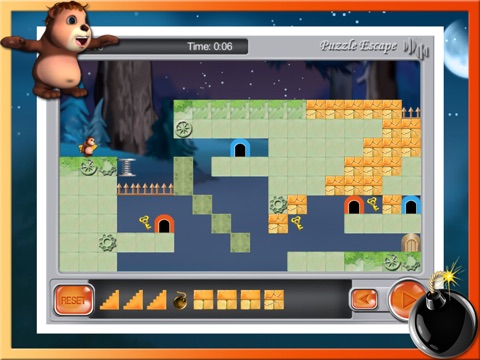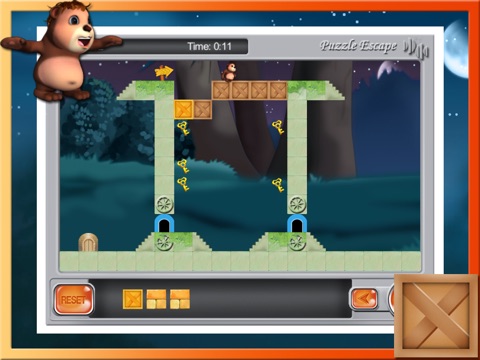 The goal is to help bear escaping, using some elements (trampolines, bombs, elevators, boxes etc),