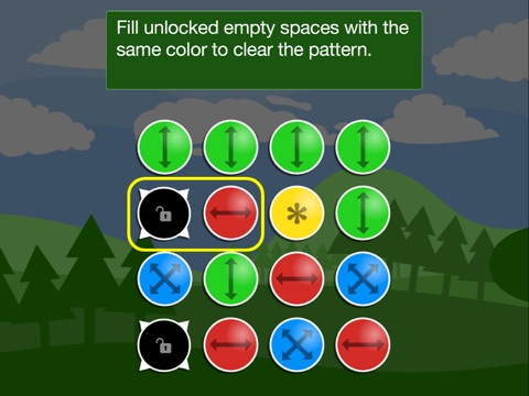 Fill the unlocked empty spaces with same color circles to clear the pattern puzzle.