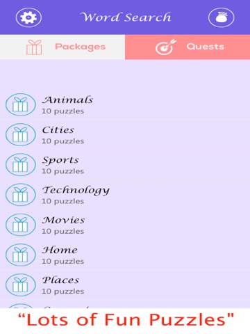 Word Search Puzzler is a classic fun word search game. The goal of the game is to find all hidden words on a random grid of letters. Many interesting topics and words make this puzzle exciting to play. Its also FREE.