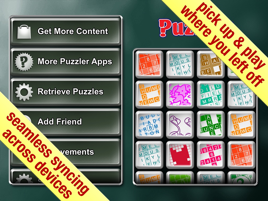 This comes with very few puzzles and you soon have to buy. You cannot clear your name and do puzzles again as you can with Puzzler 2. I tried deleting, reinstalling and reinstating purchases to play puzzles again and my purchases did not come up. Puzzler 2 is a great app for long plane flights. Was excited about a new version but very disappointed. Save your money
