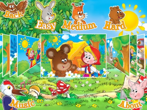 Choose from 12 themed puzzles and select the appropriate level – "easy" divides the puzzle into 6 pieces, "medium" creates 12 pieces and "hard" gives your child 20 pieces to play with and reconstruct the image. Try it at each level! See how fast he can complete each puzzle! Enjoy the background music !