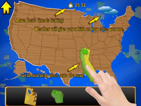 With two different game modes and three levels of difficulty, Puzzlin’ Pieces: USA provides opportunities to learn and play for a variety of ages and abilities. The beginner levels introduce the countries or their capitals to the player and useful hot/cold clues help in finding the location for each piece. However, as the game gets harder, players will receive fewer clues.