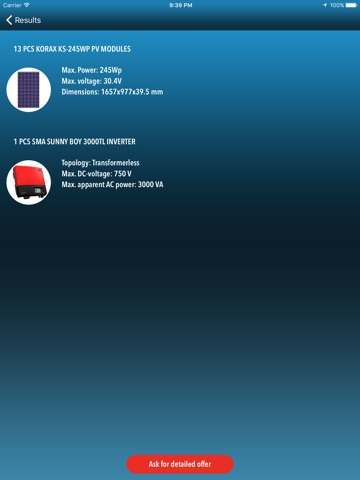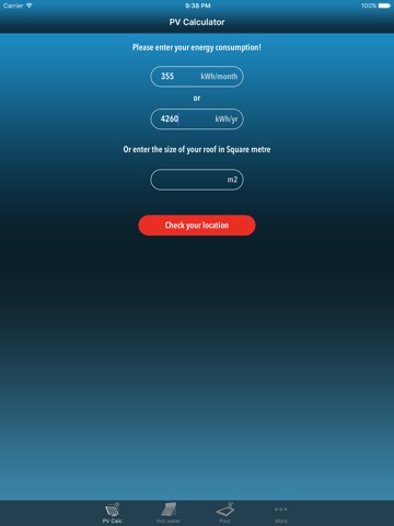 If you want to have a PV system, first you have to give your energy consumption per year or per month. If you don’t have this data, you can give the size of your roof as well. The app can calculate, related to coordinates and irradiation, your required size of PV system.