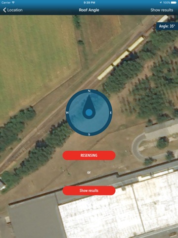 After it, on the next screen is one of the most important ones, because it uses data like the angle and direction of your roof, so we can calculate with the parameters of your house. Tilt and turn your device to get your roof’s parameters.