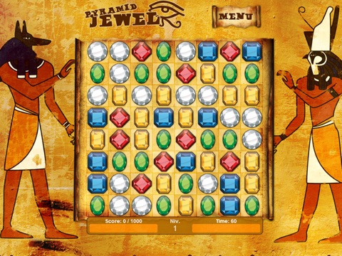 The goal is to match different colored jewels together. With time as the main factor, the game focuses on simplicity.