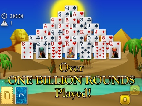 Join the people who have enjoyed Pyramid Solitaire - Ancient Egypt over 1 BILLION times! Play solitaire and build spectacular pyramids for the Pharaoh and Queen while relaxing under the Egyptian sun.