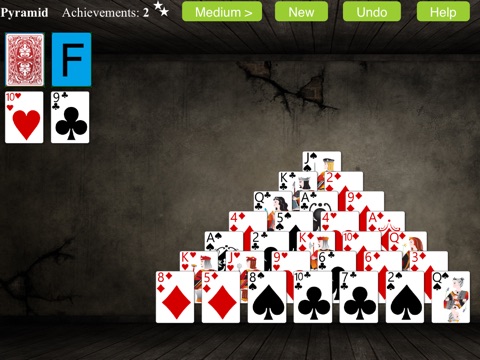Pyramid Solitaire has 3 levels - Easy (Three Help Stores), Medium (Two Help Stores) and Hard (One Help Store).
