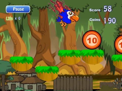 Tilt your IOS device to move the Pyro Bird one way or another. Coins unlock characters with more lives so you can get to secret levels in the game.