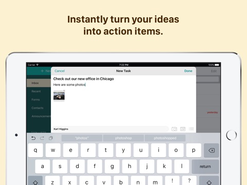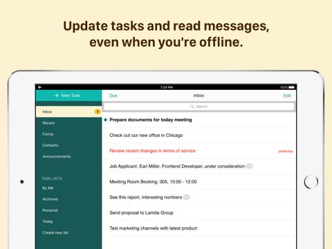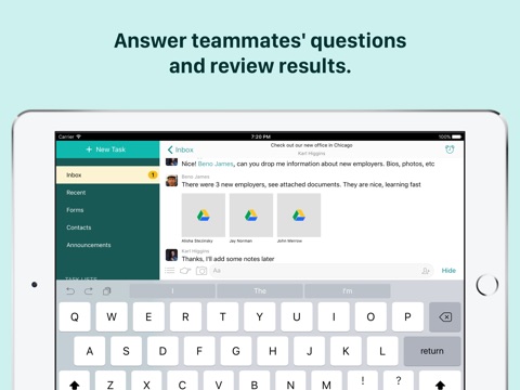 I just wanted a simple team task list for the iOS. This app is simple. There are to do lists for team members, and attach files from various popular cloud services. Also in app messaging. It could be better but its a work in development
