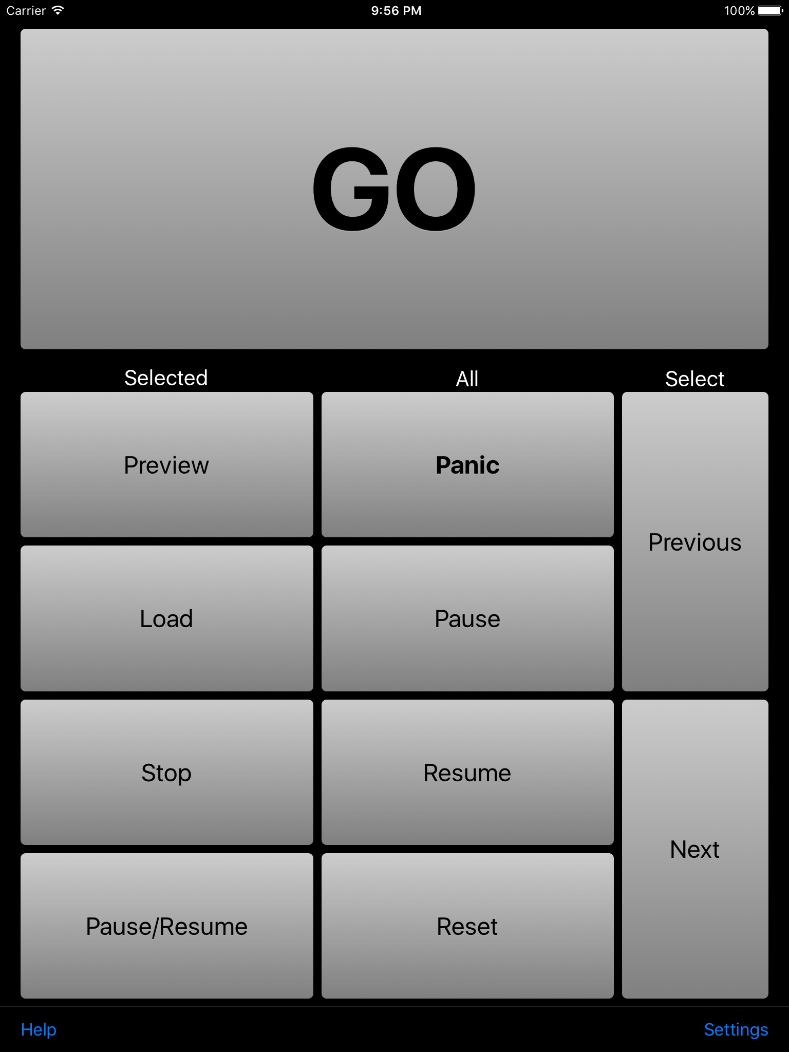 Q GO allows you to control your QLab Workspaces from your iPhone or iPad. It incorporates the most frequently used show controls, including "GO", "Panic", and playback controls, in a simple grid.