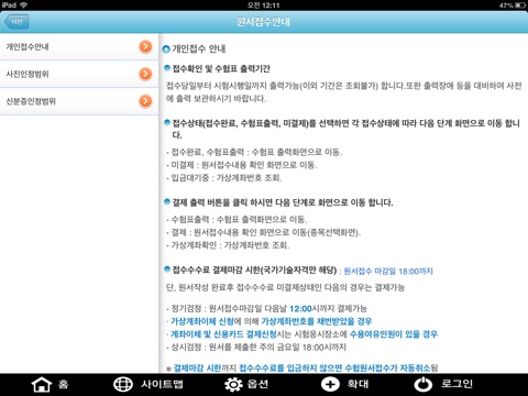 전문자격 시험 서비스는 큐넷(앱)에서 서비스가 지원이되지 않으니