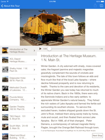 Each tour includes audio files, photos, text, and a map of the tours points of interest.