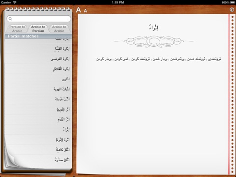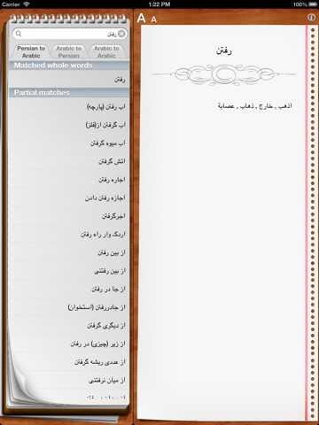 Qamos is a dictionary (Arabic to Persian) , (Persian to Arabic) and (Arabic to Arabic) for iPhone and iPad with advanced features, such as smart search for Arabic terms.
