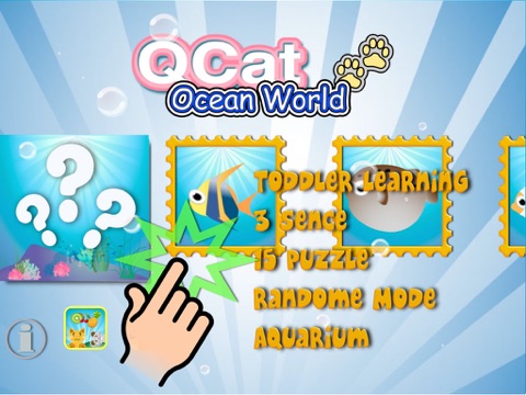 "QCat - Ocean world Puzzle is a interactive aquarium jigsaw game.
