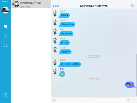 Qunar 最好用的办公类即时通讯软件,没有之一。包括即时聊天沟通,会议室预定,无线投屏,等多个提升效率的功能。