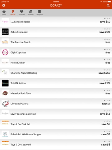 Our Qcrazy app will save you money when and where you need it by delivering restaurants, spas, car care centers, hair salons, shoe stores and more of your favorite places directly to your iPhone. Just enter your local zip code or allow iPhone GPS and receive promotions nearby.