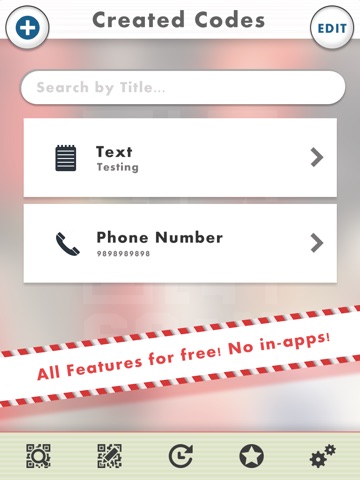 - SHARE your QR CODES through: Email, Facebook, Twitter, SMS...