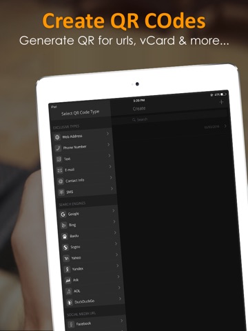 • Create QR for vCard, Contact, URL etc.
