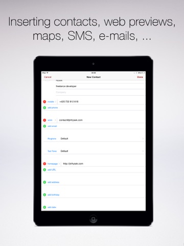 The app understands QR codes containing: