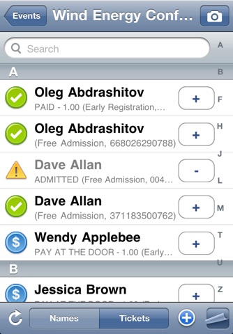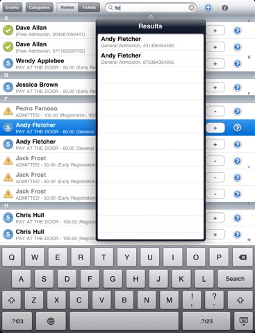 - Add new guests to the list from the app (automatically adds them to other devices and qrickets.com)