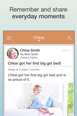 - Invite your partner or loved ones to add photos and comments to your child’s account.
