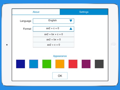 • Supports pre-defined formats for complete and incomplete quadratic equations.