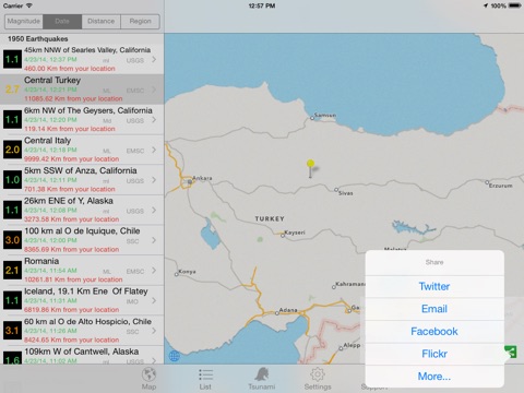 • It show details like the magnitude, the exact location, the distance from your position, the source…