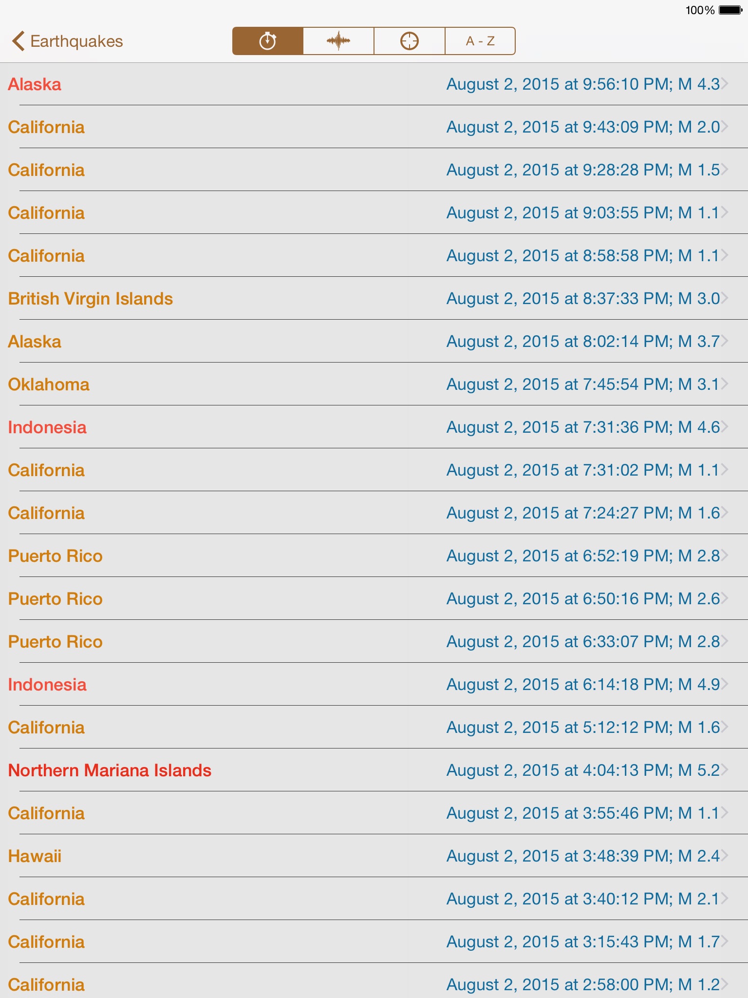 Application superbe sur iPad et bien exploitable aussi sur iPhone. Système d alertes pratique Localisation des séismes très visuelle et liens pour détails officiels pratiques Classement selon différents critères rapide et pratique
