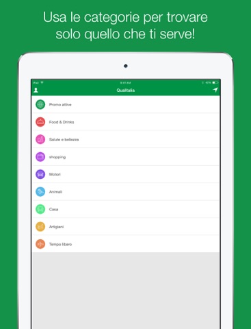 L’App contiene una fonte infinita di offerte: dai ristoranti allo shopping, dalle vacanze agli eventi, dai centri benessere agli oggetti per la casa. Scaricandola, non ti perderai più occasioni, sconti, omaggi, merce in saldo. Ti basterà semplicemente scegliere la categoria/settore che preferisci e Qualitalia ti mostrerà sulla mappa, grazie a un sistema di geolocalizzazione, quali opportunità sono disponibili nella zona in cui ti trovi.